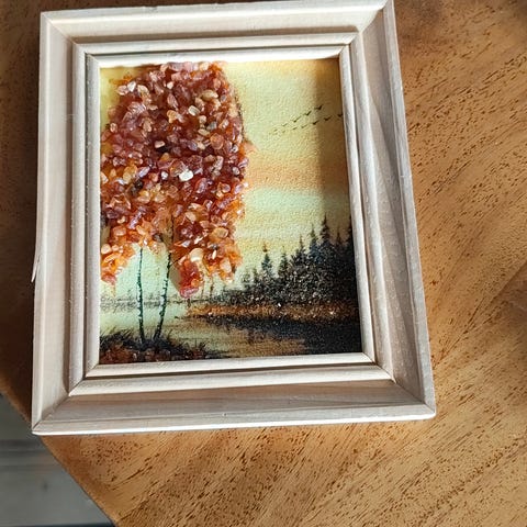 Liten glassflaske med små rav biter