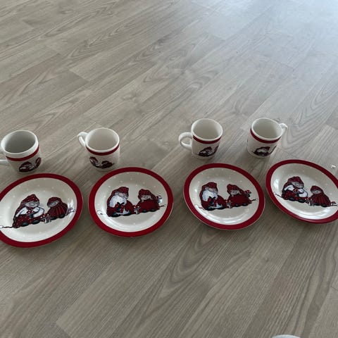 Kaffe kopp og talerken med jule motiv/ julenisser (servise)
