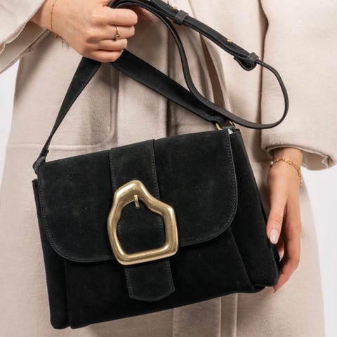 Cala Jade skulderveske laget av sort lær selges med dustbag.
