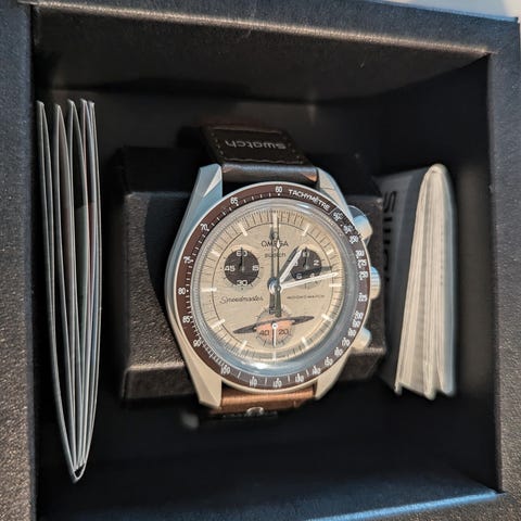 For salg er denne flotte Moonswatchen "Mission to Earthphase" .