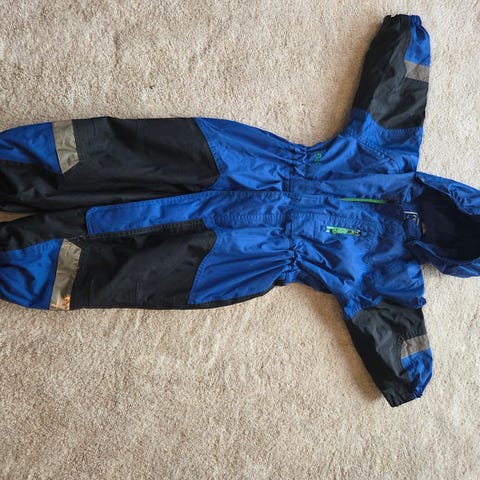 Dressen har kun svake bruksmerker. Ingen hull eller skader. Tekst er strøket ut med tusj på merkelapp inni dressen. Alt fungerer som det skal.