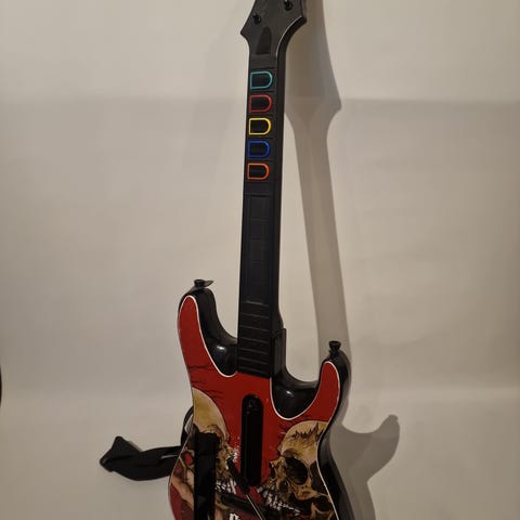 Nintendo Wii Guitar Hero gitarkontroller med solbrun farge og standard størrelse. Designet for bruk med Nintendo Wii-konsollen.