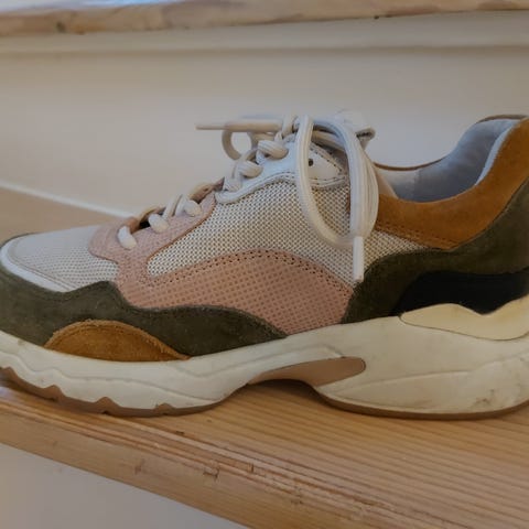 Vans Sneakers joggesko i størrelse 40. Skoene har en kombinasjon av brun og hvit farge med rosa lisser. Egnet for daglig bruk og fritidsaktiviteter.