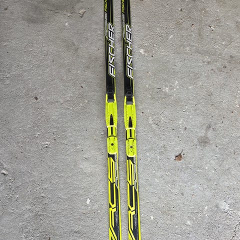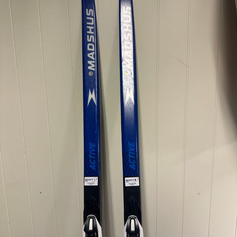 Skiene er godt brukte og og trenger rengøring og gliding (tlfnr står med tusj) Rottefella-binding