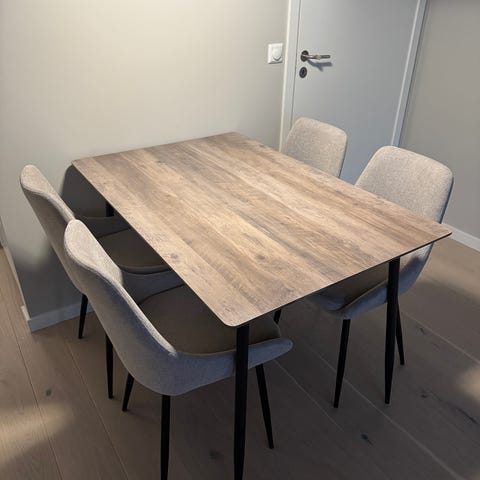 Spisebord fra BodConcept som er et Dansk merke. Hvit glassplate og med en tilleggs plate som er svart, som senkes under bordet når man lukker den. Brukt godt, glassplatene har noen riper og tilleggs platen har mistet litt av fargen sin noen steder. Ellers er den god som ny, fungere som den skal.