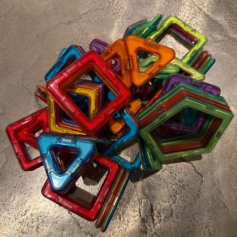 Liten byggesett med flere magneter, liten-elmotor, klemmer etc.