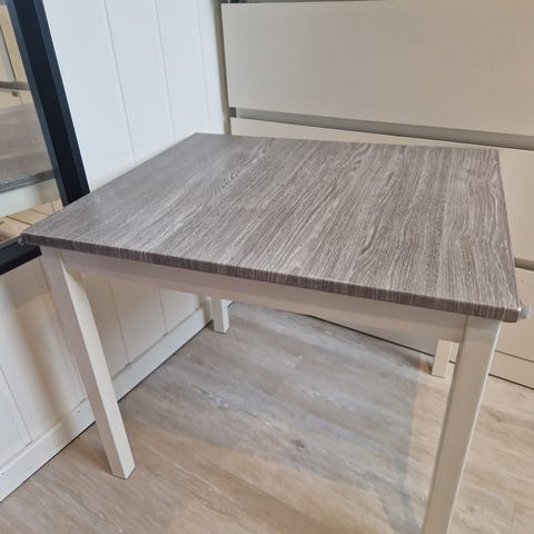IKEA barnbord i hvit farge med dekorert bordplate med tekst og hjerter. Passer for barn og kan brukes til lek og aktiviteter.