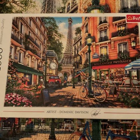 Liten skade på en brikke og noen brikker er litt slitte, men fremstår pent og morsomt å legge.