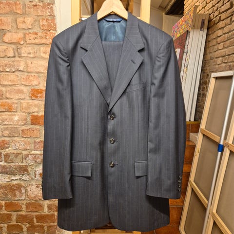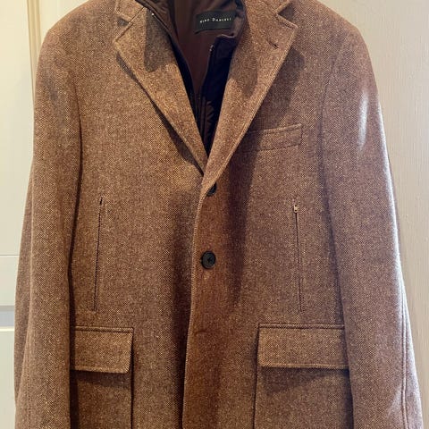 Nino Danieli er et gammelt italiensk merke, eid av Corneliani, kvalitet minst på nivå med dresser du til vanlige finner i norske butikker (Oscar Jacobson, Tiger og Sweden, J.Lindeberg og lignende). Denne er kjøpt i Italia, og svært pent brukt, kun til noen få festligheter.