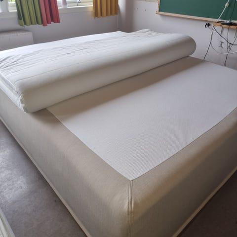 Svane sove seng i god stang selges , madresser og beina følger med, i hvit farge.