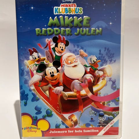 Disney Mikke Klubbhus Mikke redder julen DVD med juletema og familievennlig innhold. Inkluderer ekstra materiale som en animert kortfilm, sang og en Mikke-puslespill. Passer for barn og familier.