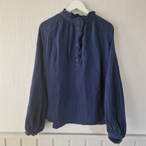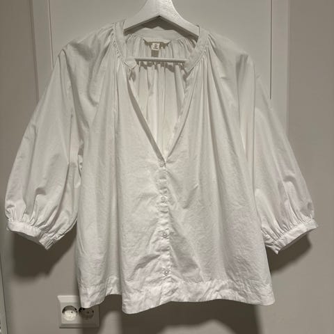 H&M bluse i svart farge, laget av bomull. Størrelse L for dame. Blusen har knappedetaljer foran og er egnet for hverdagsbruk.