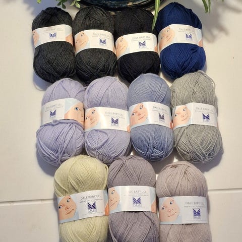 Total 11 nøster: Woolevo Baby Cotton 7 nøster - Merinor Cotton Bamboo 4 nøster
