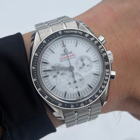 Veldig fin speedmaster racing med grå skive og gule detaljer. Meget fin og se på!