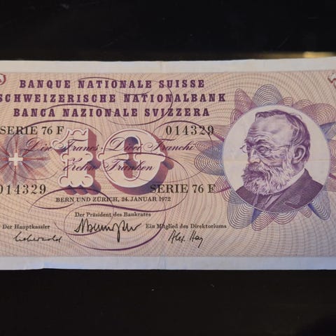 5 Fr.Sveits 1975 selges kr 75.-+porto