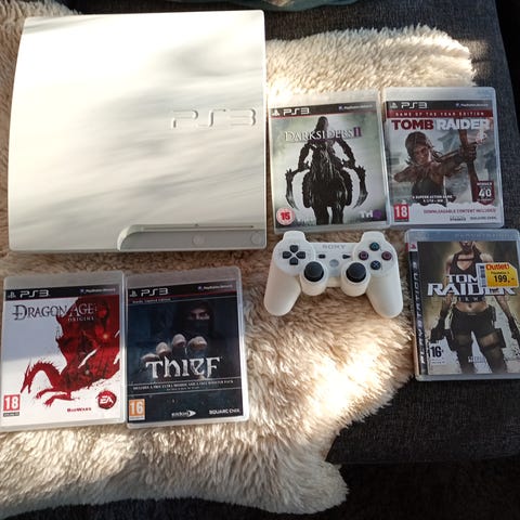 Selger PlayStation 3 Slim i god stand. Konsollen fungerer helt som den skal, leser plater uten problemer og gir normalt bilde og lyd.