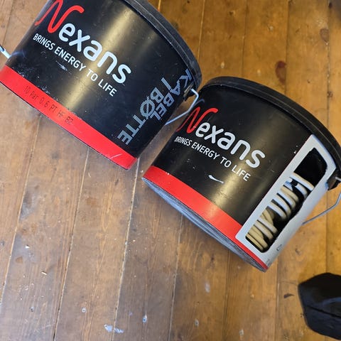 Kabeltrommelen har ligget ute noen år, men er en rest fra installasjon til vårt hus.