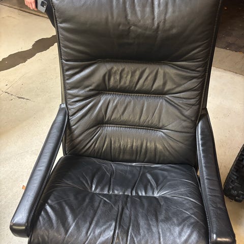 2 pene Siesta Fiora lenestoler med lav rygg fra 70-80 tallet. Disse har for det meste stått til pynt og skinnet er uten synlig slitasje og har kun bruksspor. Noe slitt mellom maljer/stoff på undersiden, se bilder. De er veldig gode å sitte i!