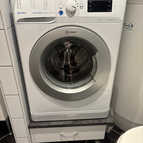 Maskinen er ellers i god stand, den vasker på alle temperaturer og sentrifugerer på alle hastigheter. Alle program fungerer, og maskinen stopper ved endt program slik den skal. For å avslutte og åpne lokket må man trykke på X-knapp.