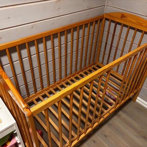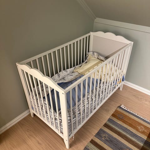 IKEA Sprinkelseng barneseng i hvit farge. Designet for barn med sikkerhetsrekkverk. Passer for små barn og gir et trygt sovemiljø.