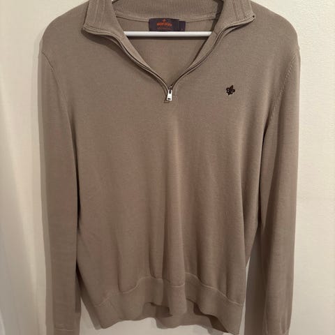 Helt ny genser fra Morris Stockholm, klassisk half-zip modell. Myk, varm og behagelig, med det karakteristiske lilje-logoet på brystet.