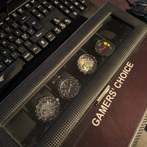 Selger en Quantum automatisk klokke med skeleton-design, hvor urverket er synlig.