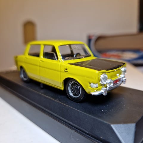 Selger en fin modell av en Simca 1501 Special i skala 1:43. Den kommer i blå farge, og leveres slik forevist på bildene. Modellen er ny i eske, men har en produksjonsfeil, det ene baklyset mangler. Selges derfor til redusert pris.