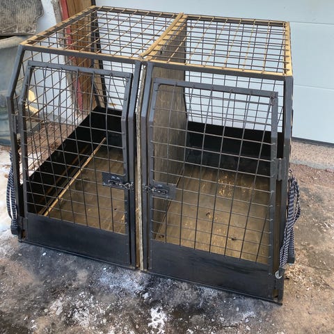 Metall bur til kjæledyr/ Kela bur. Burkonstruksjon i metall med nettingpaneler for ventilasjon og sikt. Egnet for transport eller oppbevaring av små til mellomstore kjæledyr