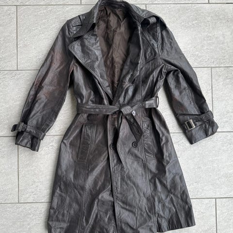 Trenchcoat i ekte skinn fra Broch Leather i størrelse M. Meget pent brukt og fremstår som ny.
