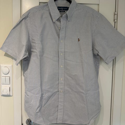 Ralph Lauren skjorte i blå farge, størrelse L for menn. Skjorten har kort erme og knappelukking foran.