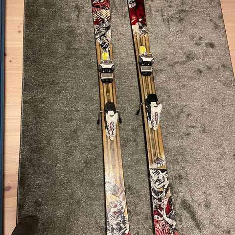 Selger et par godt brukte k2 twintip ski med marker bindinger. Bruksmerker på oversiden, samt noe riper på sålen, ikke noe alvorlig. Stålkanten er hel. Mye ski igjen!