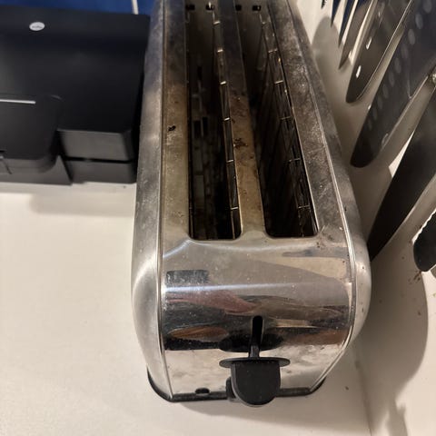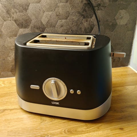 OBH Nordica brødrister i svart farge. En elektrisk kjøkkenapparat for å riste brød. Har justerbar bryter for ønsket ristningsgrad og indikatorlys for drift.