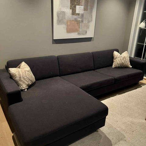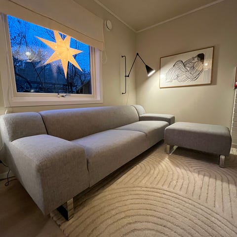 Nypris for en tilsvarende sofa med sjeselong og puff ligger vanligvis på over 50 000 kr.