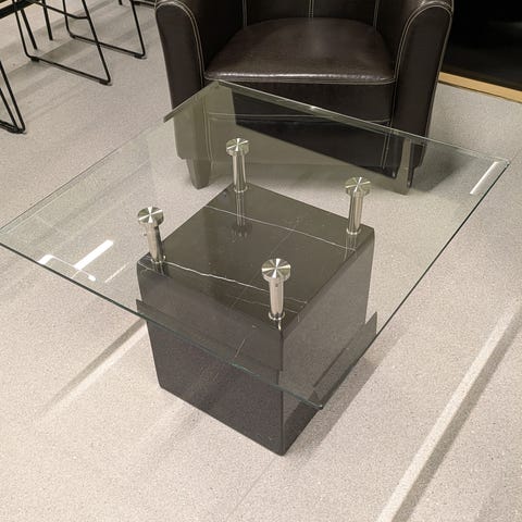 2 stk metallboks med glass overflate. Glassplatene er 6mm tykke. prisen for begge bordene er 1450kr.