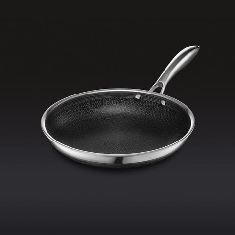 Stekepanne fra Hexclad, skal visst være en grei kombinasjon av støpejern og non-stick. Gordon Ramsay stiller seg bak de her så de er sikkert ålreit. Selve produktet er helt ubrukt, jeg bare åpnet esken og lukket den igjen.