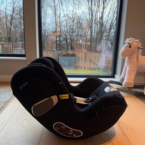 Skadefri men låsen på den ene av de sidevingene oppe på stolen er ødelagt så den lar seg ikke lukke men skal være åpne når stolen er i bilen