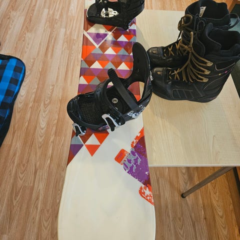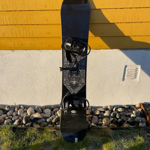 Sims snowboard i 158 cm lengde og støvler i ste. 45.