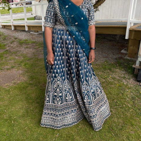 Indisk/pakistansk blå og gull lehenga.
