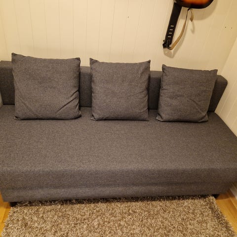 Moderne og komfortabel sovesofa i mørk grå farge.