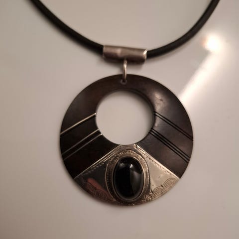 925 sølv anheng med ekte Tiffany stein. Lengde 5,5 cm.