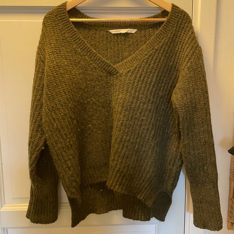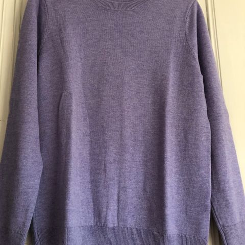 En mørkeblå klassik og behagelig genser i 100% ull. Halvhøy hals. Litt lengre bak. Løs og ledig passform. Veldig pent brukt.