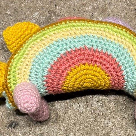 Håndlaget nissefigur med rosa lue, langt hvitt skjegg og rosa klær. Laget i mykt tekstilmateriale. Egnet som dekorasjon til jul eller vinterhøytiden.