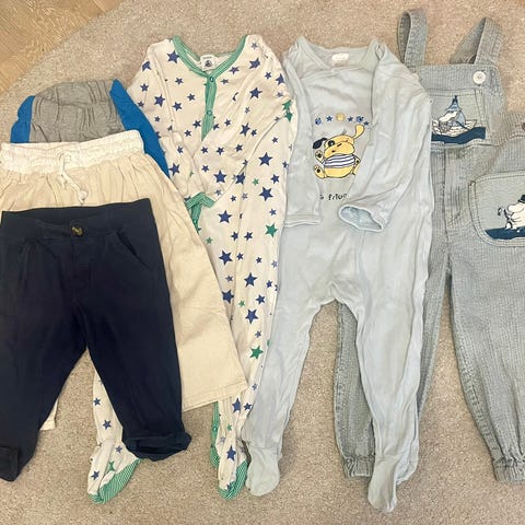Newbie kjole, brukt i en time forrige sesong + en sommerkjole fra H&M samt sommersett med topp og shorts i str 86 fra H&M. Solhatt fra newbie 😊🎀