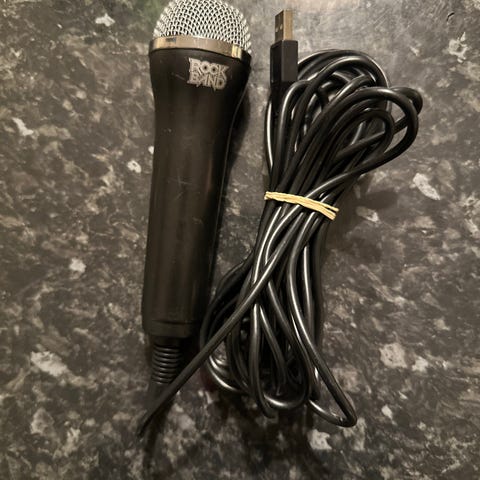 Selger en Mikrofon til Guitar Hero. Jeg fant denne på loftet under rydding. Den ser ut til å være i ganske bra stand, men den selges som den er uten noen garanti. Jeg har ikke testet den. Det er kun mikrofonen som selges. Jeg er litt usikker på om denne er til Nintendo Wii, eller til PS2, men det er en vanlig USB kobling på enden.