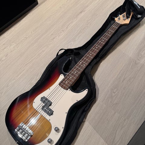 Selger flott J&D (Jack & Danny brothers) bassgitar.Den har en lys trehals.