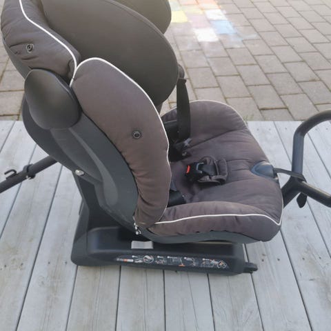 Setet har svart farge og er designet for barn. Passer for bruk i bil med ISOFIX-feste.