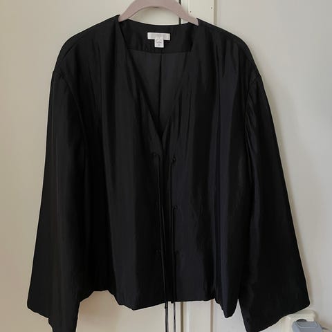 Veldig fin svart ARKET jakke. Et par bruksmerker som ikke er synlige. Lommen på innsiden er ødelagt og på innsiden av jakken (siste bilde) ellers helt fin! 🤍 Str 36/S
