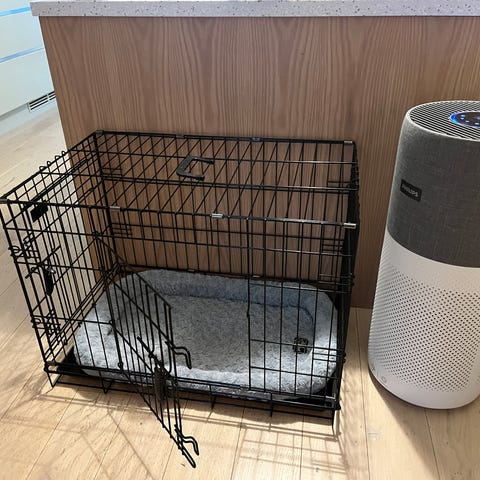 Selger et solid og praktisk hundebur som enkelt kan legges sammen når det ikke er i bruk. Perfekt både til bilen og hjemme.