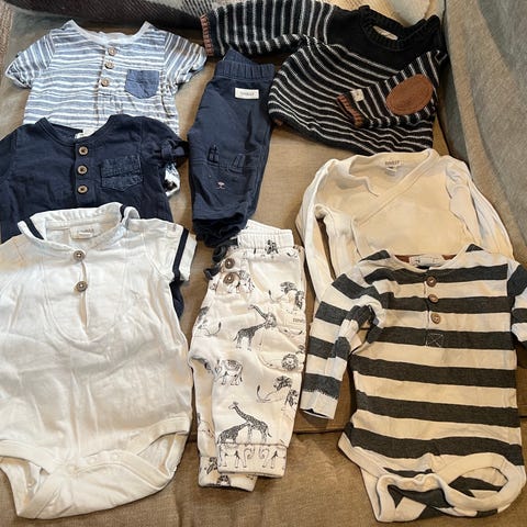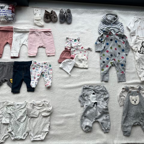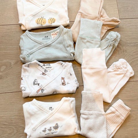 Pent brukt liten klespakke med bodyer og bukser fra H&M og Lindex