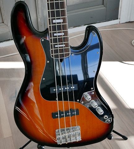 Nydelig custom bass i relic/road worn utførelse (med glossy klarlakk over slitasje-merkene), or kropp med string trough body der det er bøssinger på baksiden for gjennomføring av strengene. Vintage type single coil pickup (ikke Seymour Duncan sin variant som har mer moderne lyd). Potbrønn har tilgang fra baksiden slik at det ikke er potplate i front.